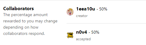 Bugcrowd offers this cool thing called collaboration. When you go to submit a report, you can choose numerous people that worked with you on that bounty and can split up winnings in any percentage right then and there.